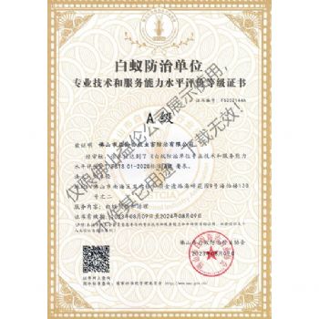 佛山白蚁防治资质A级证书(最高级)